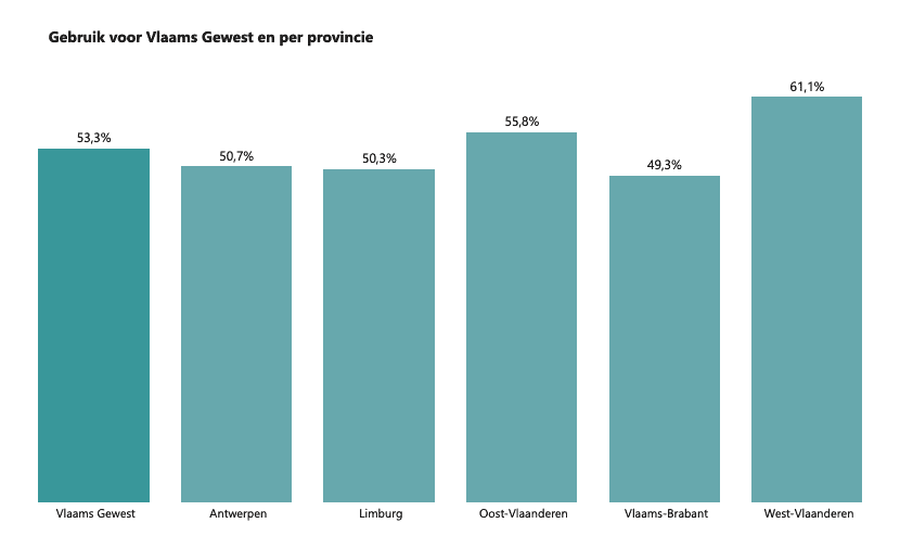 Van de kinderen tussen 2 maanden en 3 jaar die in het Vlaams Gewest wonen, maakte in september 2022 53,3% gebruik van formele opvang. Dat is op hetzelfde niveau als in september 2021 (53,4%).