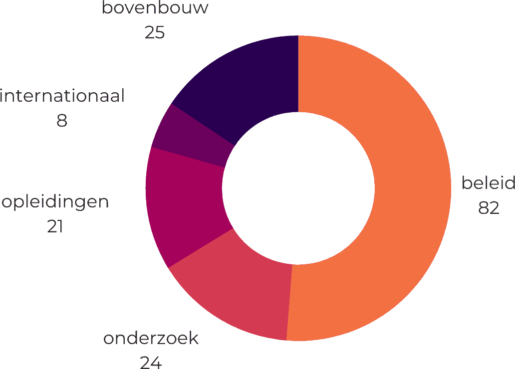 In het totaal namen we deel aan 160 overlegmomenten met 51 verschillende actoren. 51% daarvan gaat uit naar overleg met beleidsactoren.