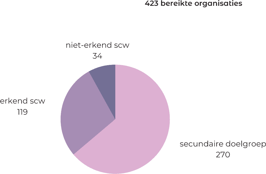 In 2022 plaatsten we via onze media en ons vormingsaanbod 70 organisaties, praktijken en initiatieven in de kijker (33 van erkende organisaties en 37 van niet-erkende organisaties).