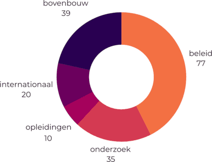 In het totaal namen we deel aan 181 overlegmomenten met 55 verschillende actoren. Het grootste deel (43%) daarvan gaat naar overleg met beleidsactoren.