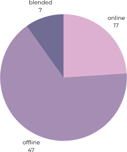 In 2023 verzorgden we 71 vormingen. 47 vormingen vonden offline plaats en 17 online. Bij 7 activiteiten ging het om een mix van beiden.