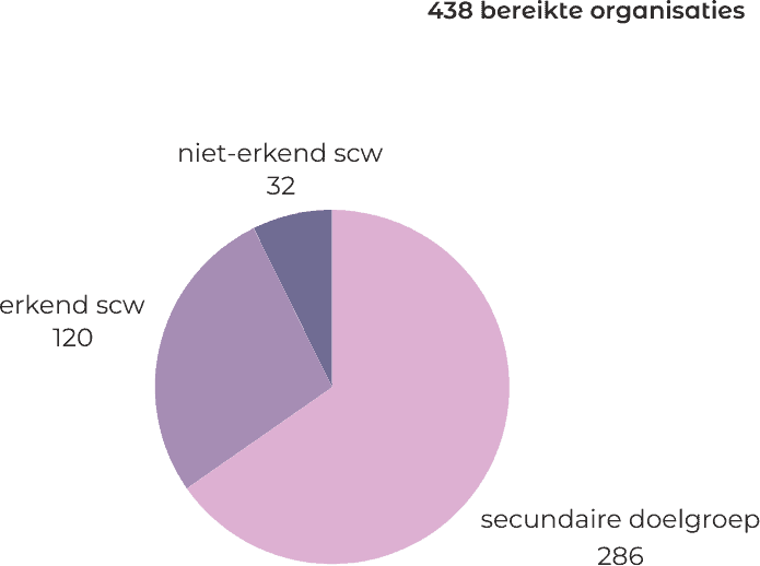 In 2023 plaatsten we via onze media en ons vormingsaanbod 62 organisaties, praktijken en initiatieven in de kijker (31 van erkende organisaties en 31 van niet-erkende organisaties).