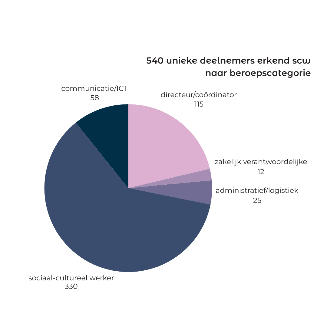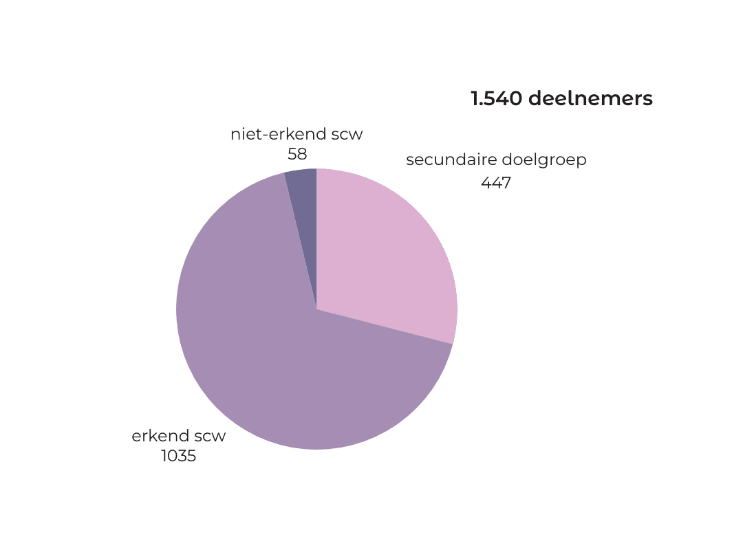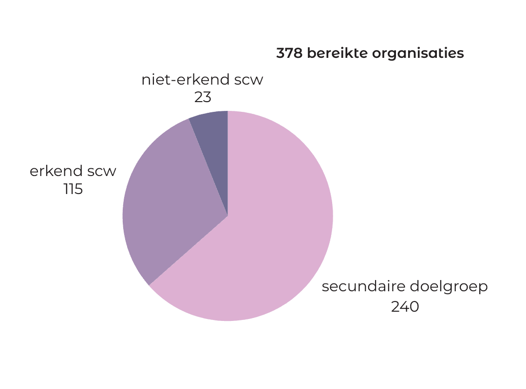In totaal bereikten we 207 deelnemers (165 uit onze primaire doelgroep, 42 uit onze secundaire doelgroep) en bereikten we 40 unieke organisaties (37 uit onze primaire doelgroep, 3 uit onze secundaire doelgroep).