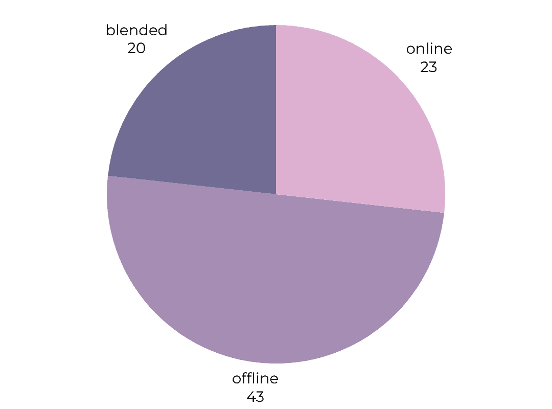 In 2024 verzorgden we 86 vormingen. 43 vormingen vonden offline plaats en 23 online. Bij 20 activiteiten ging het om een mix van beiden.