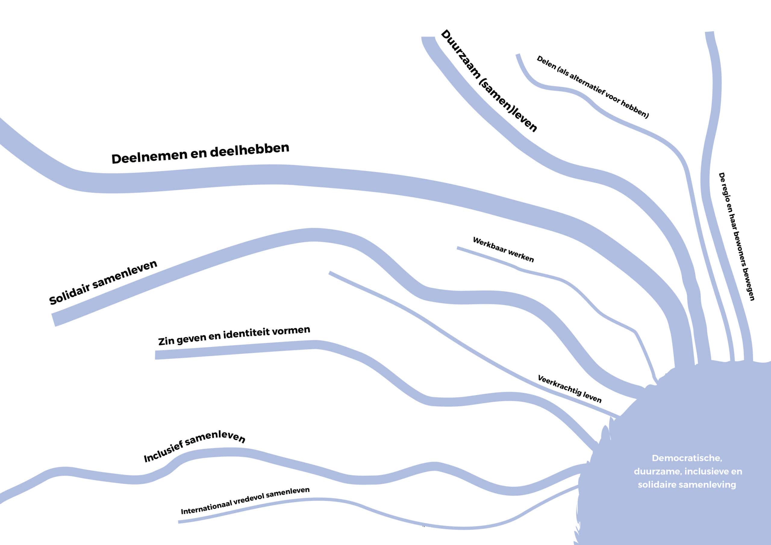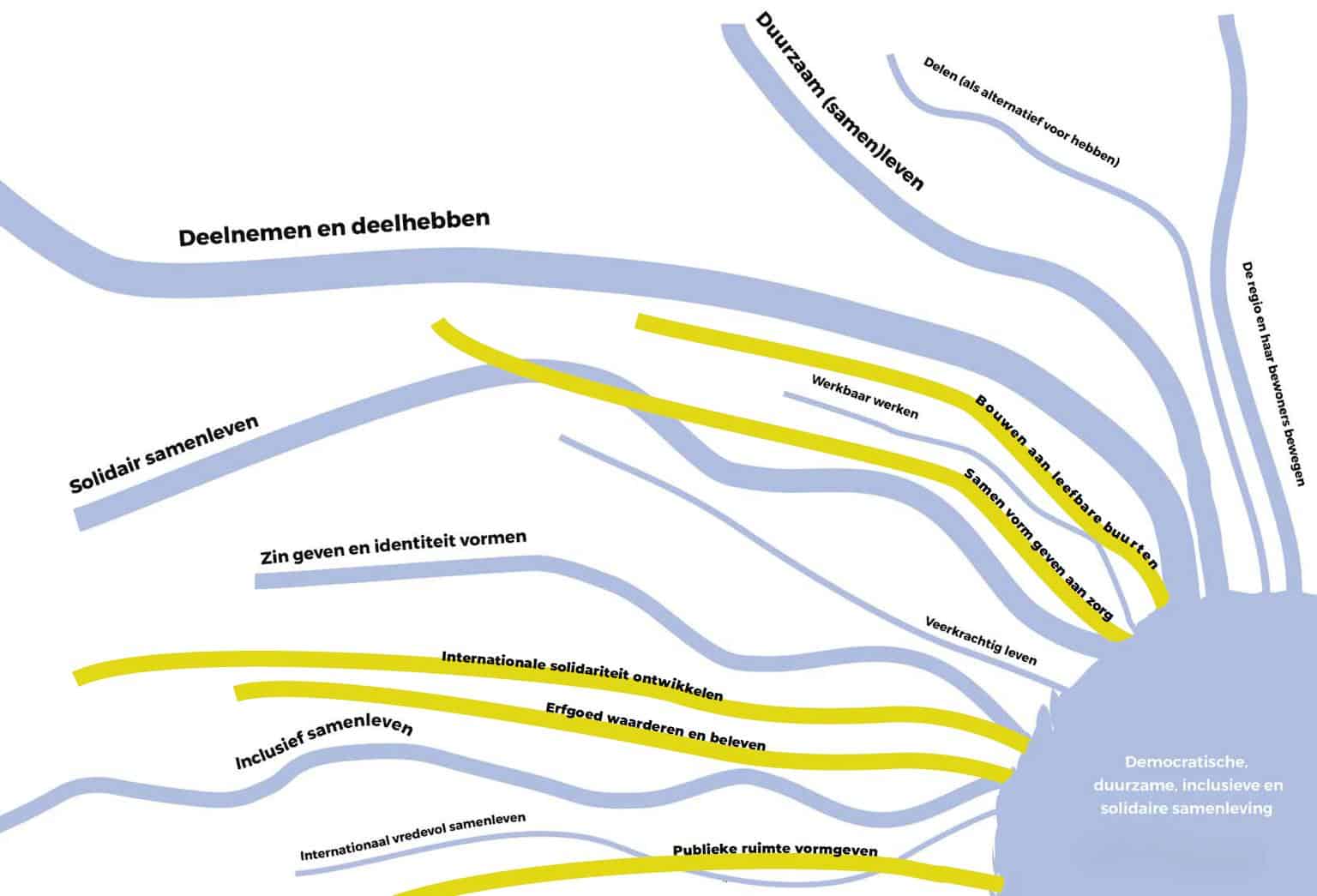Het sociaal-cultureel volwassenenwerk kan je voorstellen als een 10-stromenland. De stromen staan voor de inhoudelijke veranderingen die organisaties in de samenleving voor ogen hebben.