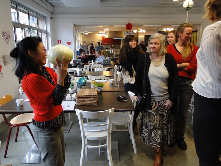 Een brede glimlach. “Hallo! Bonjour!”. Gecombineerd met kilo’s enthousiasme. Zo werden we onthaald bij Cultureghem, een prachtig lokaal initiatief in Anderlecht. Meer is er niet nodig om je welkom te voelen. Vooral niet als de sfeer zo aanstekelijk werkt. Cultureghem is een ontmoetingsplaats voor jong en oud waar er wordt gedeeld in de breedste zin van het woord: eten, ruimte en tools. Het doel van onze dag was meehelpen met hun project KOOKMET: samen met een bon-groepje (Brussels Onthaal voor Inburgering) maakten we een maaltijd met groenten en fruit die vrijwilligers de dag voordien op de markt verzameld hadden. Van voedseloverschot tot een heerlijk geurende stoofpot.