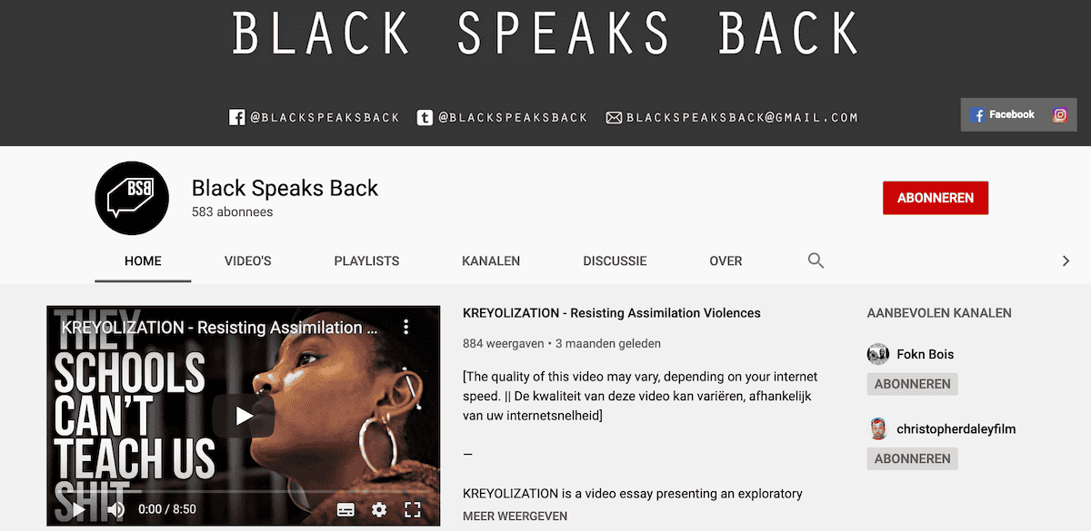Deze laatste tip is eigenlijk een YouTube-kanaal, maar ook zeker combineerbaar met de afwas. Black speaks back is een Brussels collectief dat stemmen uit de afro-diaspora in de lage landen naar voren schuift. Emma-Lee Amponsah en Heleen Debeuckelaere richtten ‘Black speaks back’ op in 2016. Op die korte tijd wisten ze al veel interessante sprekers en gasten te strikken op hun kanaal. De filmpjes tonen debatten, (slam) poetry, documentaires en een combinatie daarvan. Het kritische platform dat ze maken is interessant, vooral omdat de afro-diaspora minder aan bod komt in publieke diversiteitsdebatten.