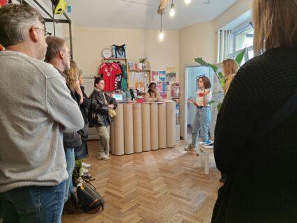 Gevoed met die interessante inzichten, trokken we verder richting Les Gazelles de Bruxelles, een sociaal-sportieve praktijk. In hun tweedehands- en weggeefwinkel Sportswitch werden we hartelijk ontvangen door Fran. Zij vertelde ons meer over missie en visie van Les Gazelles de Bruxelles, hun aanpak, concrete acties en activiteiten, hun netwerk en samenwerking met partners, hun toekomst…