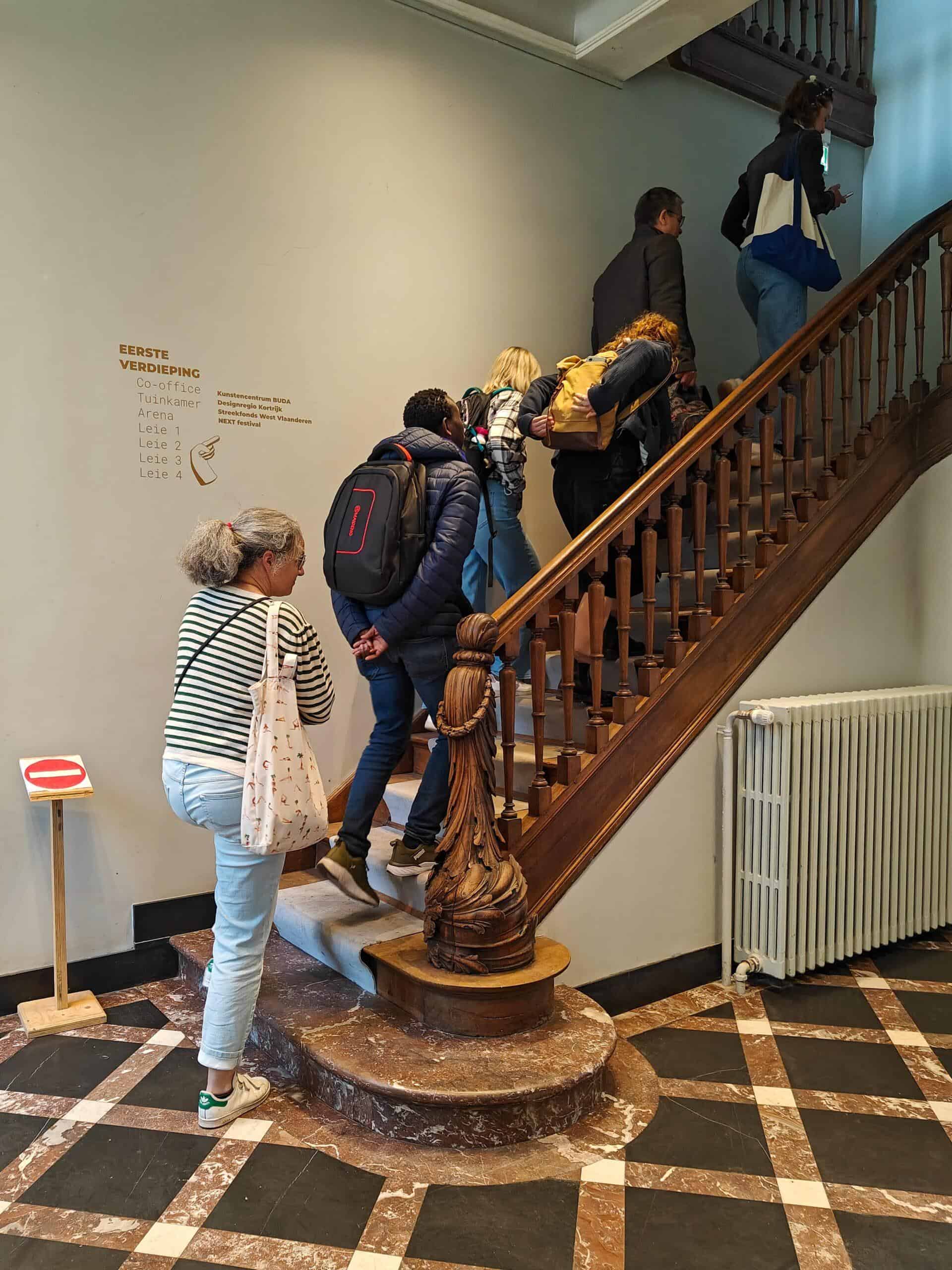 Nadien fietsten we naar kunstencentrum Buda: een cultuurhuis met residentiewerking waar regelmatig residents zijn met praktijken met een hoog sociaal-cultureel gehalte. We bezochten de expo ‘Spring refuge: hoe de dingen bijeenhouden die ons bijeenhouden’ van Heike Langsdorf.
