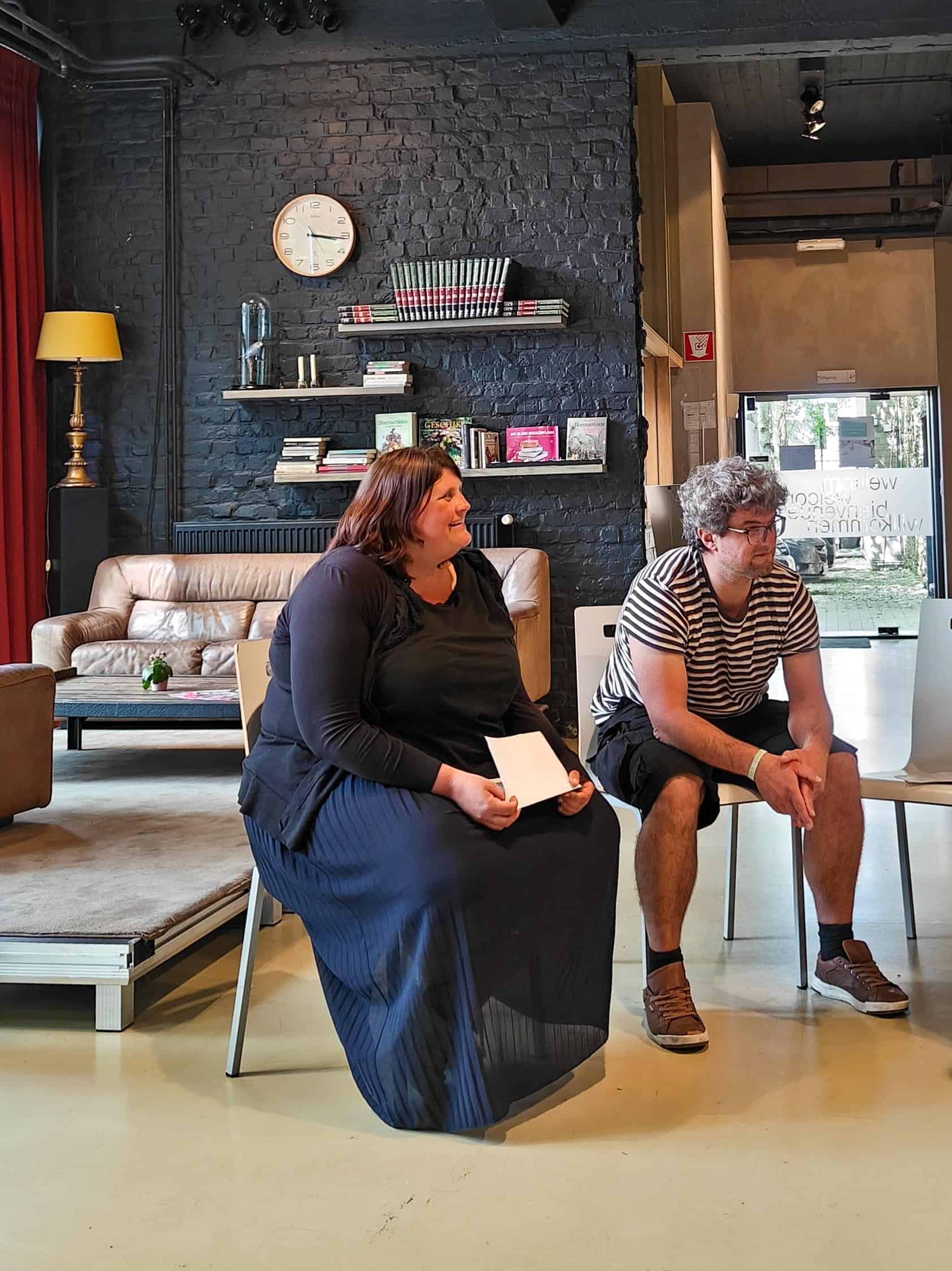 Voor ons laatste bezoek waren we welkom bij Avansa MZW, waar Ella en Hannes van FMDO ons opvingen. Ook voor hen is de culturele praktijk essentieel. Daarna deelde Nathalie van Leuven (directeur) samen met haar collega’s Maarten Vanhee, Arne De Jaegere, Rie Vanduren en partners (opnieuw Arne als regisseur bij Het Bataljong, Lucas Vandenbussche als regisseur inspringtheater burn-out) hun ervaringen over de projecten ‘Grijs Aan Zet’ en ‘Jouw burn-out is ons probleem’. Twee keer vertrekken ze vanuit verhalen van mensen om op basis daarvan ook theater te maken, heel participatief:
