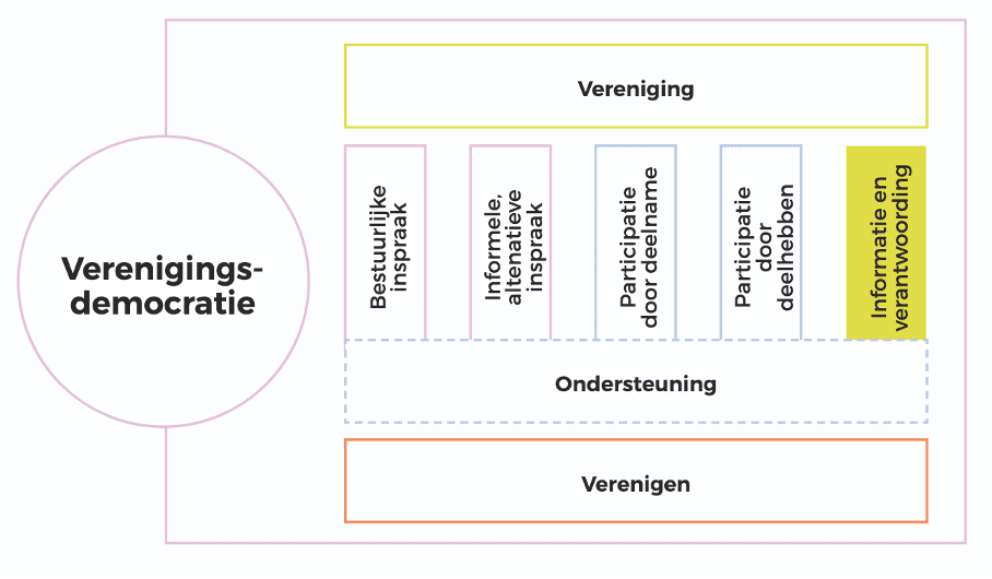 Informatie en verantwoording omvatten alle verplichtingen die je als organisatie moet nakomen vanuit de principes van goed bestuur en de wet op vennootschappen en verenigingen. Hoe leeft je organisatie die principes en wetgeving na? Welke controlemechanismen bouw je in? Hoe koppelt je organisatie transparant terug welke input ze al dan niet opneemt bij besluitvorming aan haar community?