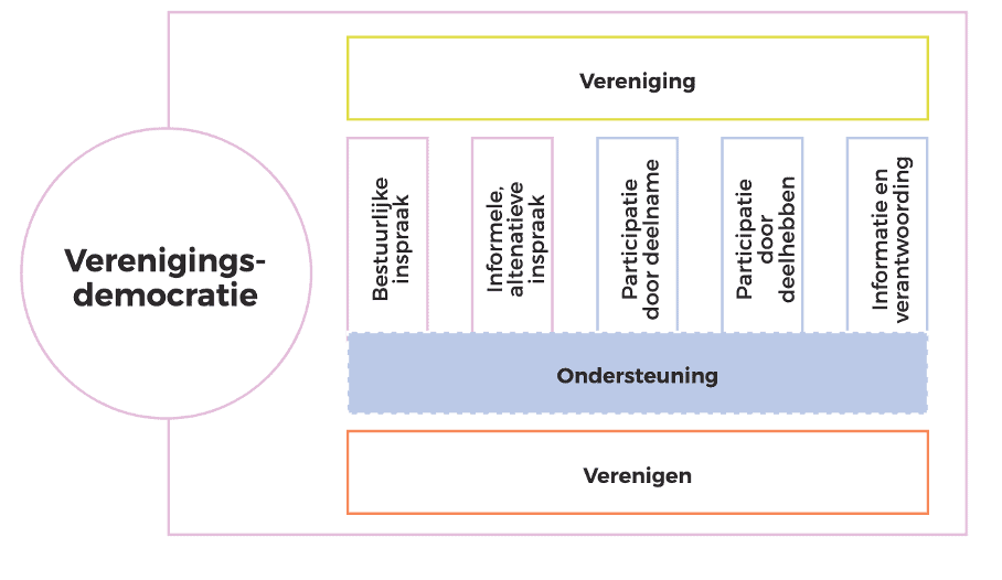 Sterke democratische professionals gedijen het best in een goed doordachte organisatie-infrastructuur met arrangementen die inspraak en participatie mogelijk maken. Ten slotte hebben je ondersteuners baat bij een duidelijke organisatievisie over hoe je de verenigingsdemocratie samen vorm wil geven: welke waarden draag je hoog in het vaandel? Hoe wil je die concreet realiseren?
